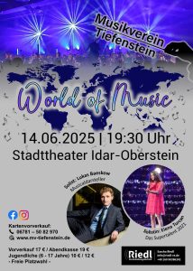 World of Music – Das war das Motto des Sommerkonzerts 2025, welches am 14.06. im Stadttheater in Idar-Oberstein stattfand. Im ausverkauften Stadttheater präsentierte der Musikverein